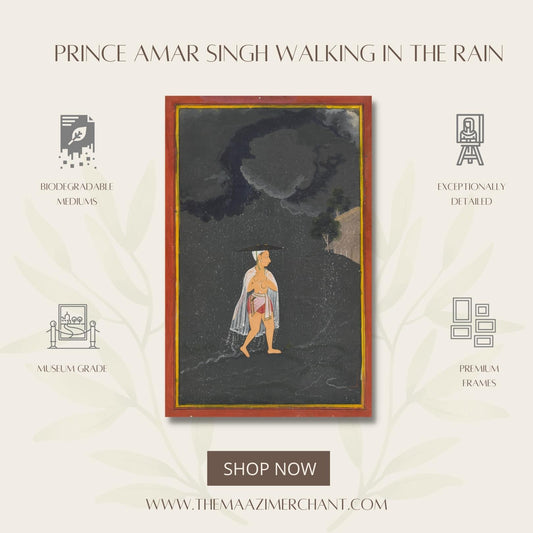 Prince Amar Singh walking in the rain