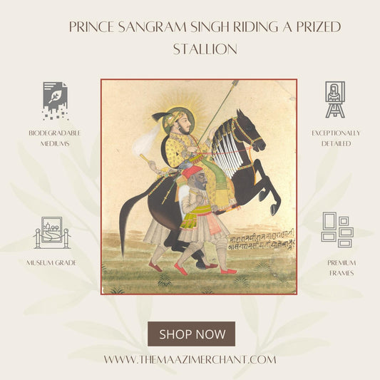 Maharana Sangram Singh riding a prized stallion