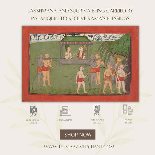 Lakshmana and Sugriva Being Carried by Palanquin to Receive Rama's Blessings