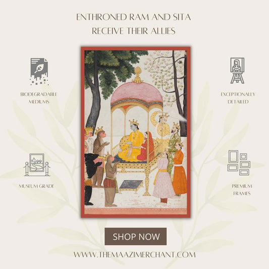 Enthroned Ram and Sita receive their allies
