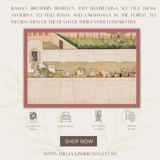Rama’s Brothers Bharata and Shatrughna set out from Ayodhya to find Rama and Lakshmana in the forest to inform them of the death of their father Dasharatha